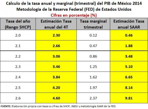 el crecimiento de 2014 tiene que ubicarse entre 2.1 y 2.2%. Crecer menos que