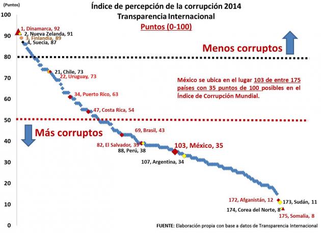 en el Índice de Percepción de la Corrupción 2014, y que, entre los 175 países