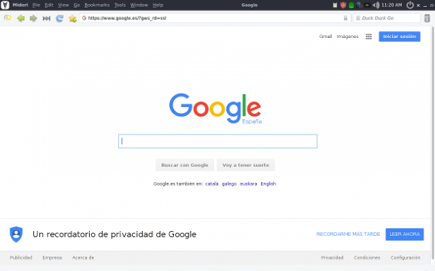 nombre "Infinity", se encuentran el navegador Midori, el editor de