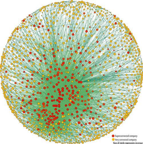 Un estudio de la Universidad de Zurich reveló que un pequeño grupo de 147 grandes corporaciones trasnacionales, principalmente financieras y minero-extractivas, en la práctica controlan la economía global. El estudio fue el primero en analizar 43.060 corporaciones transnacionales y desentrañar la tela de araña de la propiedad entre ellas, logrando identificar a 147 compañías que forman una “súper entidad”