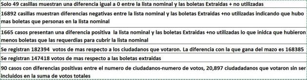 - Se registran 182394 votos de mas respecto a los ciudadanos que votaron. La diferencia con la que gana del mazo es 168385