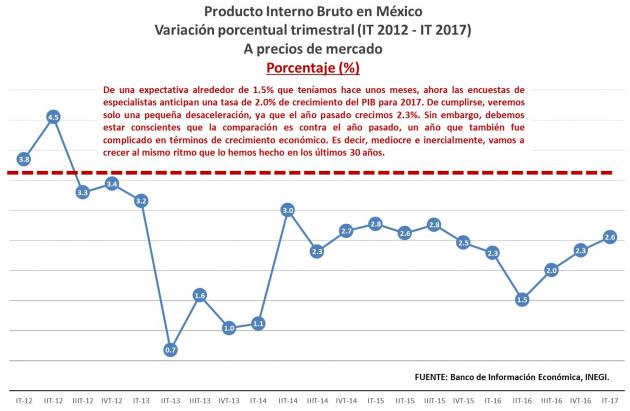Las cifras de la balanza comercial para el primer trimestre del año señalan un avance de 2.2% respecto al trimestre anterior. Sin embargo, no es lo mismo la entrada de dólares nominales (de la balanza comercial) que la contabilización del volumen de exportaciones, que es lo que miden las cuentas nacionales. Tenemos que sumar los servicios exportados (principalmente turismo), convertir a pesos y deflactar por el índice de precios de exportación. El resultado es que las exportaciones en cuentas nacionales crecieron 4.4%, no solamente lo doble que el registro de la balanza comercial, sino que resulta el componente más dinámico del PIB medido por el lado del gasto. Esta noticia es muy buena, ya que en el mismo periodo se observaron tasas negativas para la inversión pública (-3.7%), el consumo de gobierno (-0.5%) y la inversión privada (-0.7%). El consumo de los hogares mostró una muy pequeña desaceleración (a primera vista), ya que creció 0.67% comparado con 0.75% del trimestre anterior. De hecho, si las exportaciones continúan creciendo a buen paso, podríamos esperar tasas positivas para la inversión privada en poco tiempo. Lo único que no tiene remedio es el gasto público, ya que el gobierno pasa por un proceso necesario de consolidación fiscal, en detrimento de la mayoría de las entidades federativas. El buen desempeño del trimestre, en especial de las exportaciones, ha llevado a una revisión al alza en el consenso de crecimiento para el año. De una expectativa alrededor de 1.5% que teníamos hace unos meses, ahora las encuestas de especialistas anticipan una tasa de 2.0% de crecimiento del PIB para 2017. De cumplirse, veremos solo una pequeña desaceleración, ya que el año pasado crecimos 2.3%. Sin embargo, debemos estar conscientes que la comparación es contra el año pasado, un año que también fue complicado en términos de crecimiento económico. Es decir, mediocre e inercialmente, vamos a crecer al mismo ritmo que lo hemos hecho en los últimos 30 años. Ahora bien, como en entregas anteriores en esta columna, el énfasis debemos hacerlo en el consumo privado de bienes nacionales. Precisamente: el consumo de los hogares. El promedio de los primeros tres meses del año resultó 0.67% superior al trimestre anterior. Sin embargo, el consumo de marzo resultó -1.1% inferior a diciembre, por lo que claramente hubo una trayectoria negativa en el transcurso del trimestre. Existen múltiples indicadores complementarios que apuntan hacia una desaceleración mucho más significativa en el consumo privado. Posiblemente el más importante es la aceleración en la inflación, que ha mermado significativamente el poder adquisitivo de las familias. En principio, no se debe medir el consumo total de las familias para el cálculo del PIB, sino solamente la de bienes y servicios de origen nacional. Dada las complicaciones estadísticas, cada componente se mide en su totalidad y al final se restan las importaciones totales. De esta forma queda la producción interna del país para el total, pero no queda tan claro cuánto fue la parte interna para cada uno de sus componentes. Dado que las importaciones crecieron 6.2% en el primer trimestre, vimos una expansión muy robusta en la demanda agregada. Pero dado que sabemos que hubo importaciones muy elevadas de bienes de consumo no petroleros, podemos inferir que el consumo de bienes y servicios de origen nacional no creció en el primer trimestre, por lo que su desaceleración fue muy pronunciada. De ahí que la “proveeduría local o de bienes nacionales” está colapsada. Aparentemente, la importación de bienes de consumo del primer trimestre fue excepcional, por lo que no debe mantenerse. La pregunta es que, si se va sustituir por bienes de origen nacional, lo que ayudaría a que el consumo de los hogares que contribuye al PIB se recupere en lo que resta del año. Si no sucede esto con el consumo de bienes nacionales (Consumir lo hecho en México o Durango), podríamos anticipar una mayor desaceleración. @leon_alvarez