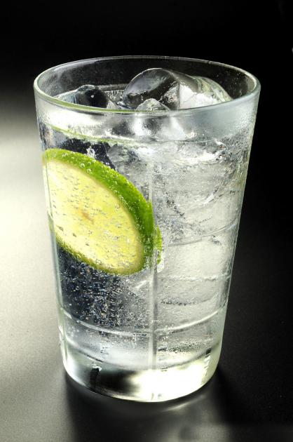 tal y como nació; una parte de ginebra, cuatro de agua tónica, hielo y una