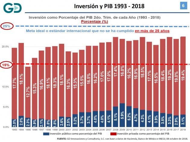 inversión privada debe ser de alrededor de 30% del PIB nacional. En México, la