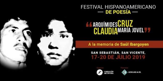 Arquímides Cruz y Claudia María JovelArquímides Cruz y Claudia María Jovel son dos poetas mártires originarios de San Sebastián, San Vicente. Arquímides nació en diciembre de 1964 y Claudia en enero de 1969. Ambos formaron parte de los talleres “Tagualashte”, de San Sebastián, y “Xibalbá”, de la Universidad de El Salvador, donde ambos estudiaron carreras humanísticas. “También conformaron un grupo musical. A Finales de los años ochentas su vocación artística y humana los llevó a comprometerse con las luchas de liberación popular. Desde 1989 se encuentran desaparecidos. Póstumamente se publicaron selecciones poéticas de sus obras por parte de ACODJAR de R. L.”.En la carta de invitación que recibió cada poeta invitado se lee lo siguiente: “El objetivo fundamental es aportar, desde la poesía, herramientas democráticas de convivencia y ampliación de horizontes y oportunidades para nuestra juventud y reconocer el legado histórico y literario de ambos artistas”. Poetas Internacionales: Ana Torres Licón (México), Silvia Siller (México), Guillermo Bianchi (Argentina), Melissa Merlo (Honduras), Miriam Damaris Maldonado (Puerto Rico) y Rebeca Bolaños (Costa Rica).Poetas de El Salvador: Ada Membreño, Alfonso Fajardo, André Cruchaga, Anthony Molina, Claudia Meyer, Edgar Iván Hernández, Fredy Tato Mejía, Jorge Vargas Méndez, Kenny Rodríguez, Manolo Flores, Manuel Barrera, Pedro Valle y William AlfaroFundación Metáfora: Alejandra Guevara, David Juárez, Fernando Monzón, Kike Zepeda, Liza Alas, Melissa Lucha, Otoniel Guevara, Rainier Alfaro y Xochitl Cabrera.Calendario de actividades: (17-20 de julio, 2019)Miércoles 17 de Julio 9 am. Centro Escolar “Anita Alvarado”, de Cojutepeque. Leen: Miriam Damaris Maldonado (PR), Manuel Barrera (El Salvador), Edgar Iván Hernández (ES)10: am. Instituto Nacional “Walter Thilo Deininger”, de CojutepequeLeen: Rebeca Bolaños (CR), Liza Alas (ES), Alfonso Fajardo (ES)10: am. Liceo “Raúl Contreras”, de CojutepequeLeen: Guillermo Bianchi (Arg), Ana Torres Licón (Mex), Xochitl Cabrera (ES)10: am.Instituto Nacional de Apastepeque, Apastepeque. Leen: Melissa Merlo (Hon), Kike Zepeda (ES), Fredy Tato Mejía (ES)6:00 pmMUSA, de ApastepequeLeen: Miriam Damaris Maldonado (PR), Melissa Merlo (Hon), Guillermo Bianchi (Arg), Ana Torres Licón (Mex), Rebeca Bolaños (CR),Jueves 18 de Julio 10: amCentro Escolar “Federico González”, de San Sebastián Leen: Ana Torres Licón (Méx), Mellisa Merlo (Hon), William Alfaro (ES) Eric Henríquez (SS)10: am. Instituto Nacional de San Sebastián, San SebastiánLeen: Rebeca Bolaños (CR), Xochitl Cabrera (ES), Antonio Ponce (SS)10 amComplejo Educativo Católico “La Santa Familia”, de San SebastiánLeen: Guillermo Bianchi (Arg), Kike Zepeda (ES), Claudia Meyer (ES)10: amCentro Escolar “San Sebastián”, de San SebastiánLeen: Miriam Damaris Maldonado (PR), Rainier Alfaro (ES), Kenny Rodríguez (ES)Gerson Rosales (SS)5:00 pmAuditorio de ACODJAR, San SebastiánHomenaje al poeta Saúl Ibargoyen e inauguración de la Plaza de los PoetasLeen: Miriam Damaris Maldonado (PR), Melissa Merlo (Hon), Guillermo Bianchi (Arg),Ana Torres Licón (Mex), Rebeca Bolaños (CR), Silvia Siller (Mex)Viernes 19 de julio 9 amInstituto Nacional “José María Peralta Lagos”, de QuezaltepequeLeen: Miriam Damaris Maldonado (PR), Liza Alas (ES), André Cruchaga (ES)10: amComplejo Educativo Católico “María Julia Hernández”, de QuezaltepequeLeen: Rebeca Bolaños (CR), Kike Zepeda (ES), Manolo Flores (ES)10: am. Casa de la Cultura de QuezaltepequeLeen: Ana Torres Licón (Méx), Melissa Lucha (ES), Ada Membreño (ES) Anthony Molina (ES)10: amCentro Escolar “España”, de San SalvadorLeen: Silvia Siller (Méx), Jorge Vargas Méndez (ES), Ricardo Castrorrivas (ES)10: amCentro Escolar “Modesto Barrios”, de AguilaresLeen: Mellisa Merlo (Hon), Rainier Alfaro (ES), Pedro Valle (ES)1:00 pmComplejo Educativo Católico “Sor Clara Gómez”, de ColónLeen: Guillermo Bianchi (Arg), Xóchitl Cabrera (ES), David Juárez (ES)5:00 pmMuseo del Banco HipotecarioPresentación de libros del Proyecto Editorial “La Chifurnia”Leen: Miriam Damaris Maldonado (PR), Melissa Merlo (Hon), Guillermo Bianchi (Arg), AnaTorres Licón (Mex), Rebeca Bolaños (CR), Silvia Siller (Mex).Esta información ha sido compartida gracias a la cordialidad del poeta, editor y periodista salvadoreño Otoniel Guevara (n.1967), él es el Coordinador Ejecutivo, de este evento literario.Información • https://m.facebook.com/Festival-Hispanoamericano-De-Poesia-De-San-Sebastian-1055103171356823/carlosjavierjarquin2690@yahoo.es Escritor y poeta