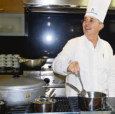 Un carismatico Chef que lleva cocinando desde su primer mandato el mismo pastel. Manda en la cocina llamada Colombia con mano firme a quien piense diferente a él y con corazón grande a los paramilitares y compinches de su camada.