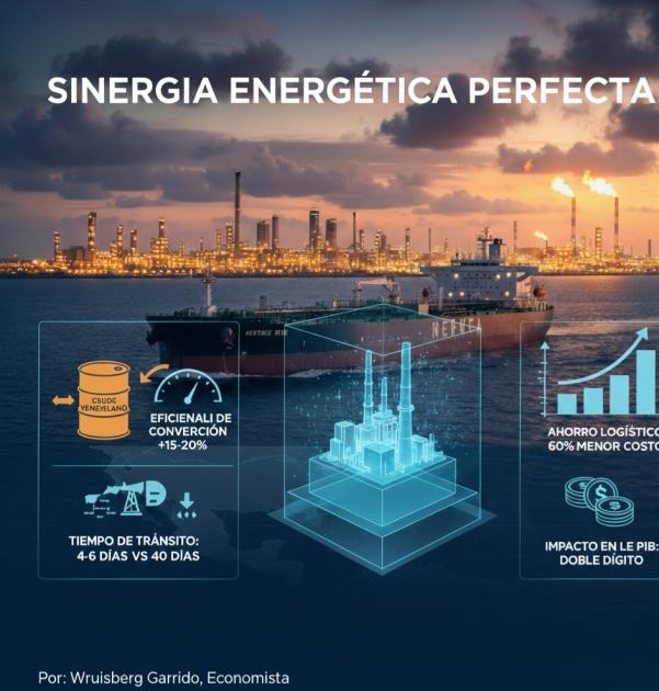 La Ventaja del "Crudo a Medida"Desde una perspectiva técnica, el crudo venezolano (especialmente el de la Faja Petrolífera del Orinoco) posee una densidad y composición de grados API que se acopla perfectamente a las unidades de conversión profunda y coquizadoras del Golfo de México. Mientras que otros proveedores deben enfrentar largas rutas marítimas de 40 días, Venezuela se encuentra a escasos 4 a 6 días de navegación.Esta eficiencia logística no solo reduce costos operativos, sino que minimiza la huella de carbono del transporte, haciendo que nuestra cadena de suministro sea una de las más competitivas del hemisferio.Eficiencia Técnica: Maximizando el Valor por BarrilPara un refinador en el Golfo, recibir crudo venezolano no es solo una cuestión de suministro, es una cuestión de eficiencia de conversión profunda. a) Optimización de Unidades: El crudo venezolano permite que las unidades de coking y los hidrocraqueadores operen a su máxima capacidad de diseño, logrando un rendimiento de productos de alto valor (como diesel y combustible para aviones) superior en un 15% a 20% en comparación con dietas de crudos más ligeros que no aprovechan la infraestructura instalada. b) Ahorro Logístico: Mientras que los fletes desde el Medio Oriente pueden tardar hasta 40 días, la ruta Venezuela-Golfo se completa en solo 4 a 6 días. Esto reduce los costos de transporte y seguros en un 60%, impactando directamente en el margen de refinación neto (SRM).Cifras de un Renacimiento EconómicoEl impacto de esta reactivación no se mide solo en barriles, sino en la transformación del tejido económico nacional. Proyectar un incremento sostenido en la producción nos permite visualizar escenarios de crecimiento robusto: * Capacidad de Respuesta: Venezuela cuenta con las reservas probadas más grandes del planeta (más de 300.000 millones de barriles). * Inyección de Capital: Se estima que la estabilización y el escalamiento de la producción hacia la meta de los 1,2 millones de barriles diarios (bpd) representaría un ingreso incremental que podría dinamizar el PIB nacional en porcentajes de doble dígito en el corto plazo. * Efecto Multiplicador: Por cada dólar invertido en la industria petrolera primaria, se generan efectos de arrastre en servicios, infraestructura y tecnología que impactan al 60% del sector industrial conexo.Destinados al DesarrolloEn las métricas que como economista he planteado y construido para estudiar este fenómeno, veo a Venezuela no solo como un exportador de materia prima, sino como un país privilegiado y destinado a ser una potencia energética integral. La infraestructura está allí, el conocimiento técnico que estará a disposición es sólido y la demanda del mercado internacional es real.Las inversiones vendrán porque la lógica económica es implacable: la eficiencia siempre busca el camino de menor resistencia. El flujo de crudo hacia el norte y el flujo de capitales hacia el sur es una ecuación de "ganar-ganar" que ya está en marcha.Estamos ante un horizonte de optimismo. Venezuela está recuperando su rol como actor fundamental en la seguridad energética del continente. Nuestra posición no es solo una ventaja comparativa; es la base sobre la cual construiremos una economía moderna, diversificada y, sobre todo, fuerte.El futuro se escribe con energía, y Venezuela tiene la pluma en la mano.
