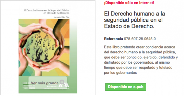 * Editado por la UAM, ediciones impresas agotadas, disponible solo en línea http://libreriavirtual.azc.uam.mx/ciencias-sociales-y-humanidades/4-derecho-humano-a-la-seguridad-publica-en-el-estado-de-derecho-el.html