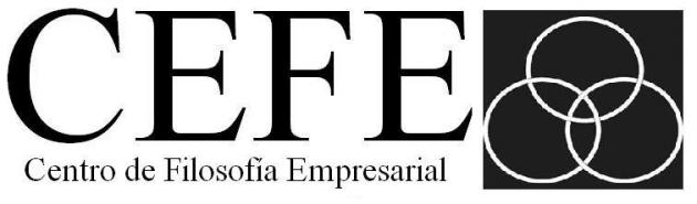 “La Misión del Centro de Filosofía Empresarial -CEFE- es planificar estrategias de desarrollo empresarial con altos niveles de calidad para el mercadolocal e internacional”.