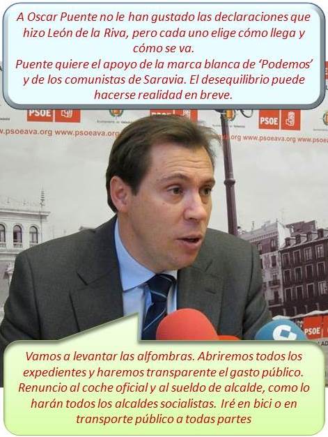 Por Jesús Salamanca Alonso / La prensa vallisoletana de hoy plasma una entrevista a Oscar Puente, candidato a la alcaldía de Valladolid. En ella se observa que Puente es un ‘pardillo’, a pesar de que lleva varios años como concejal en la oposición. No ha madurado y sigue mostrando a los cuatro puntos cardinales su indigencia intelectual y esa ambición desmedida que tanto le perjudica. Siempre hemos dicho que el PSOE perdió una ocasión de oro al apartar a Cecilio Vadillo, único que podía dar mayorías controladas a los socialistas pucelanos.
