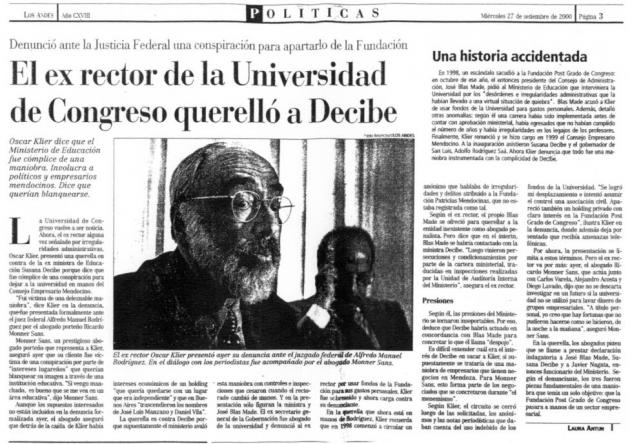 Ciencia Política, Oscar Klier. Esta crónica en su defensa póstuma, reclama