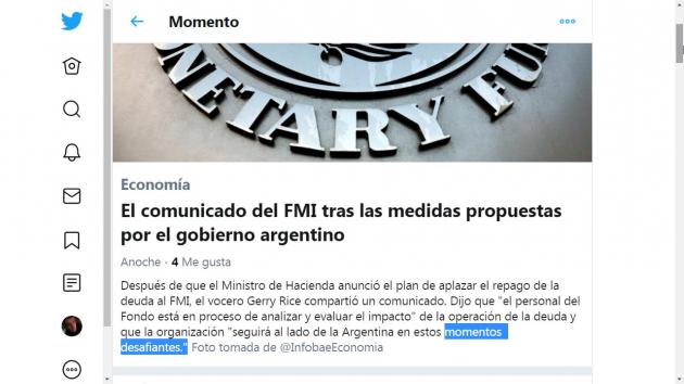 Las últimas medidas que tomó el gobierno, de patear para adelante el pago de Bonos, Títulos y Papeles argentinos, priorizando los dólares que quedan para sostener el tipo de cambio y que las divisas se fuguen, es exactamente lo contrario a lo que dicen los estatutos de FMI y para lo cual nos dieron el mayor préstamo de la historia del organismo.