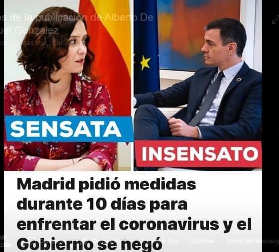 Todos tenemos el susto en el cuerpo con el Covid-19 y la ineficacia mostrada por el gobierno ‘bichavista’, fruto de la desidia y del mal asesoramiento sanitario. Diez días llevaba el gobierno madrileño pidiendo medidas al central sin que éste reaccionaria. Estaba por medio el folclore del 8M y Sánchez no podía estropear el “cháchara” propagandístico de sus chicas ministeriales, así como de la machista ministra que va “sola y borracha” e Igual Da, además de su ineficaz media naranja. Ya no nos engañan más: el gobierno de la siniestra más obtusa ha primado lo festivalero y lo político-mediático por encima de la salud de la ciudadanía. Merece un suspenso rotundo, muchos gorrazos detrás de las orejas y diversos sopapos dialécticos.
