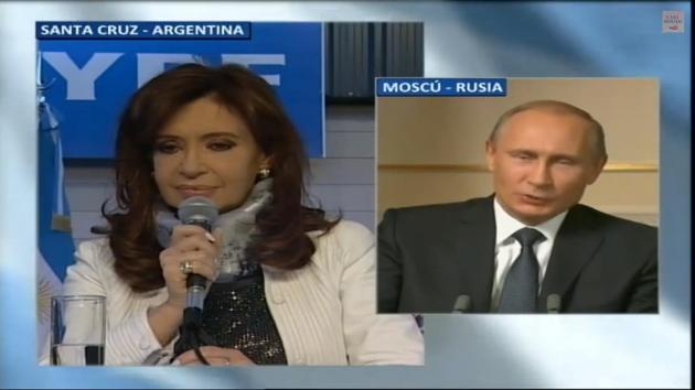 Para completar la agenda de distracción, la Presidenta en vídeo conferencia nada menos que con Putin su par ruso, que nunca había utilizado ese formato de comunicación con otro mandatario, anunció también la inclusión del canal RT TV de ese país en nuestra grilla de TVHD.