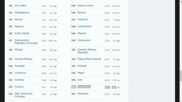 Claro que hablamos de Chile, único país de América del Sur entre los 10 países con más Libertad Económica del mundo. Esto frente a nosotros la Argentina que en este 2017 quedamos en el puesto 156 sobre 186 países medidos, por debajo de Irán y Nigeria.