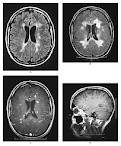 frecuentemente compromiso cerebral, dilatación ventricular, peor función