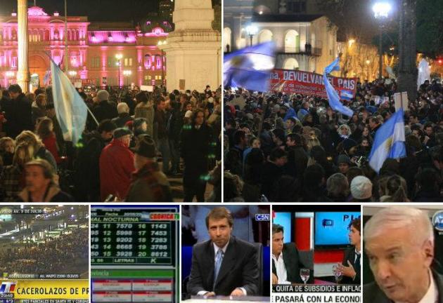 Conozco la radio desde mi modestia y estoy decepcionado, la TV en cambio es un mundo complejo y lejano, que por ahora, me supera, pero como público calificado puedo advertir que la situación es peor y muchisimo más grave por su llegada a la sociedad. La última columna de Jorge Fontevecchia en Perfil, nos cuenta lo que todos sabemos que pasó, pero no porqué pasó. Las excusas son insuficientes, lo que cada medio, programa y periodista argumentó en cuanto al motivo de no cubrir "los cacerolazos" es débil en relación a la omisión. Es como si los medios televisivos, en particular los canales de noticias, se convirtieran en los "hacedores" de la realidad y no en los que deben reflejarla. El pretexto implicito fue "que como desde algún canal corporativo se había alentado el Cacerolazo, ellos no podían ser parte de la operación mediática" Lo que siginifica decir: como TN que pasó el segundo, (pero no el primero, ese día fue "el Prende y Apaga") y de algún modo desarrolló el tema en sus noticieros, nosotros actuamos como contrapeso y los omitimos para evitar el efecto domino o contagio. Esto le dio lugar solo a los programas militantes (financiados con dinero público) a que expusieran sus informes sobre "Las cacerolas de teflón" reduciendo la protesta a un sector social y una región. Pero más grave todavía, simplificando el reclamo a la "venta de dólares y el no pago de impuestos de las clases más acomodadas".