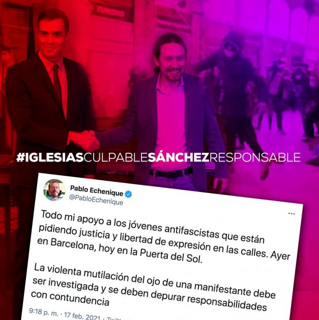 Recomiendo a la señora Armengol que vuelva a leer el párrafo anterior y compruebe que no se encarcela a un rapero sino a un DELINCUENTE y, como tal, tiene que cumplir la pena. Parece mentira que Armengol haya llegado a presidenta porque demuestra que sus conocimientos y preparación son los de un gazapo. Cuente, cuente presidenta: 50 heridos y de ellos 33 son policías nacionales sólo en Barcelona. Durante el fin de semana habrá muchos más. A eso hay que añadir que ‘Hundidas’ Podemos se está luciendo con su apoyo a las protestas, incluso las alienta a diario con el fanático pretexto de que la culpa es de la brutalidad policial. En pocos países, como en España, la Policía es tan mansa y permisiva con el terrorismo urbano.