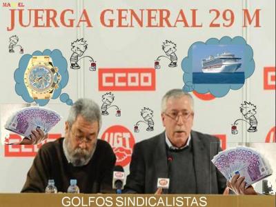 “Quieren acabar con todo” porque ven peligrar sus yates, sus sueldos millonarios, sus cruceros de vino y rosas, sus largas vacaciones incontroladas, su ‘patrimonio sindical’, sus ayudas sin control del Tribunal de Cuentas, sus coches oficiales y su poder para decidir con el dinero y el esfuerzo de otros. La huelga general es una irresponsabilidad sin precedentes, donde los perdedores deben ser los aprovechados sindicatos de clase, cuyo papel está devaluado y más que lo estará a partir del 29 de marzo. No cabe negociación con ellos porque no nos representan a los trabajadores, aunque sí parecen representar a los seguidores/trabajadores a los que engañan con facilidad. Creo en el sindicalismo pero no en el modelo cavernario que representan UGT y CC.OO.