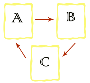 El sitio A apunta al B, entonces el B apunta al tercero que llamaremos C, luego entonces el sitio C apunta hacia el tuyo. Quedando todo como la gráfica de la derecha.