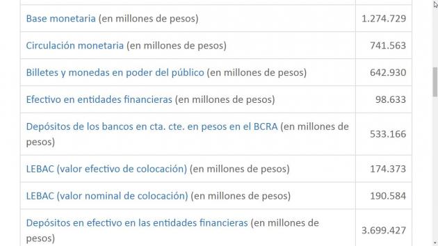 En la ilustración muestro una captura de pantalla de la última semana, de las principales Variables en Pesos que publica el BCRA Da vértigo ver la cantidad de miles de millones de pesos, que hay desde la base monetaria, a los pesos en circulación, más los distintos instrumentos depositados. No hice la cuenta exacta, se las dejo a ustedes, pero son cerca de 5 billones de pesos, que solo están donde están, por el nivel de la tasa de interés.