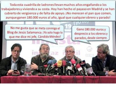 No hay duda que mucha gente vivía mejor con el PSOE. Eran todos aquellos que estaban colocados a dedo y ‘morreando’ con la situación que les habían regalado. Pero todo eso se ha acabado con Mariano Rajoy. El nuevo presidente está dispuesto a poner orden y parece que lleva camino de conseguirlo. Por eso protestan quienes defendían la situación anterior. Es el caso de los sindicatos: no daban un palo al agua, engañaban a los trabajadores, despreciaban a los parados, tramaban situaciones para coger dinero de los EREs y del FOGASA y, como el tal José Ricardo, vivía como un banquero. Incluso vamos más allá: consiguió provecho para UGT, en nombre de UGT. Y luego arreglaban la situación para engañar a Hacienda con la propia declaración. ¡Hay que ser sinvergüenzas y despreciables! No es de extrañar que muchos afiliados de UGT quieran que desaparezcan ese tipo de ‘ladrones’ del entorno de su organización.