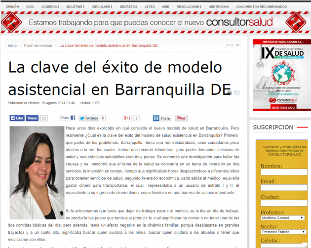 A todos nos interesa que los colombianos más pobres y vulnerables tengan mejor salud, porque significa una mejor dinámica económica, menores conflictos sociales, una mayor equidad, un mayor desarrollo, eso es un tema que nos conviene a todos. Con este modelo en el tiempo se puede demostrar que se disminuyen los altos costos. Los resultados del modelo de Barranquilla no es solo en infraestructura, no es solo en satisfacción del usuario, los resultados finales son realmente el mejoramiento de la salud de las personas.